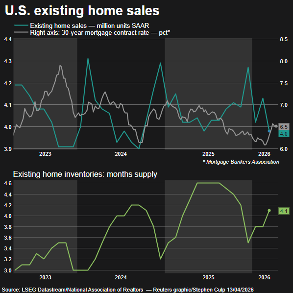 Existing-home sales fell 3.6% in March 2026 to a nine-month low of 3.98 million annualized, as weaker confidence, soft job growth, and slightly higher mortgage rates cooled demand while prices still rose to a 408,800‑dollar median.